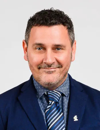 cœurs bleus qui sont affichés dans la vitrine de son magasin.